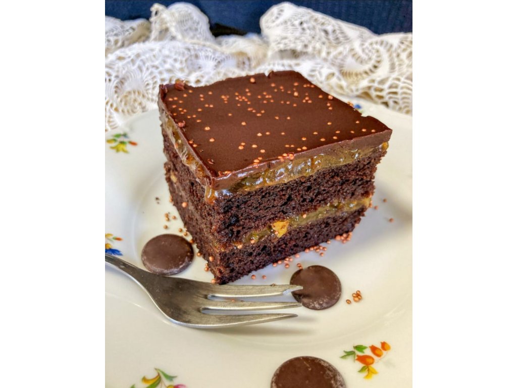 Meruňková marmeláda, Poleva tmavá čokoláda (obsahuje sojový lecithin)