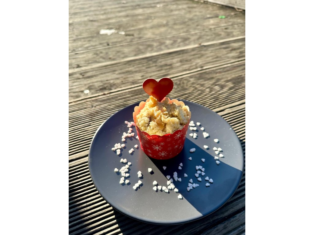 SLOŽENÍ: mouka pšeničná, cukr, olej rostlinný, tuk alaan (dovozce kalma), Sojový nápoj, jablečný ocet, soda, sůl, třešně bez pecek,